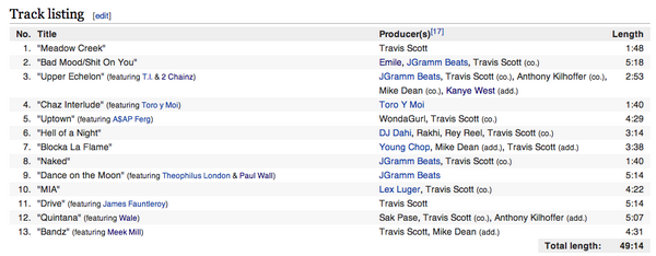 To my surprise, Travi$ didn’t actually handle the bulk of Days Before Rodeo’s production. Looking further back, on Owl Pharaoh only two songs were produced by him without outside assistance. Now he wears the title producer, and he receives a mountain of praise for the work he does behind the boards, but in talking to people, most don’t seem to realize that the man they’re praising actually didn’t produce much of the work they seem to love him for producing. It reminds me of group projects back in high school, the one that writes his name the biggest usually did the least amount of work.